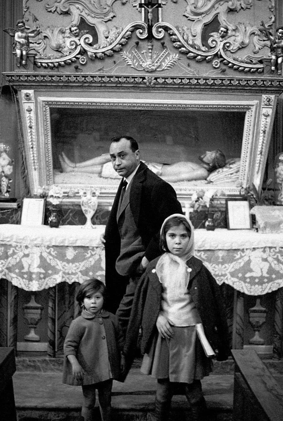 L’écrivain sicilien Leonardo Sciascia, en qui le photographe voyait un père et maître, se voit dédier toute une aile de l’exposition. Ensemble Ferdinando Scianna (alors âgé de seulement 21 ans) et Leonardo Sciascia imagineront en 1965 Feste Religiose in Sicila (Fêtes Religieuses en Sicile),un livre témoignant de la ferveur des manifestations religieuses siciliennes d’une manière proche du néoréalisme italien.