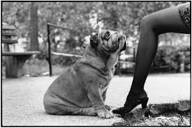 Aimant les chiens, Erwitt porte sur eux un regard plein d’humour. Une photo en noir et blanc intitulée Dog représente un petit chien portant un pull debout à côté des pieds d’une femme portant des sandales à lanières. Une autre photo, Dog Show, montre de dos quatre personnes regardant une compétition de caniches. Entre eux, un grand caniche se tient sur ses pattes arrière et semble apprécier le spectacle.